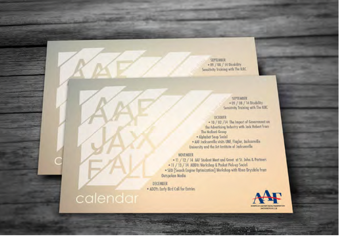 As Creative Chair of AAF Jacksonville, I brought bold, cohesive branding to life across year-round campaigns—spanning social, print, and event experiences. From curating inspiring speakers to shaping the ADDY Awards galas and overseeing national judging, I helped lead the charge in making each touchpoint feel elevated, engaging, and built for our vibrant advertising and marketing community.